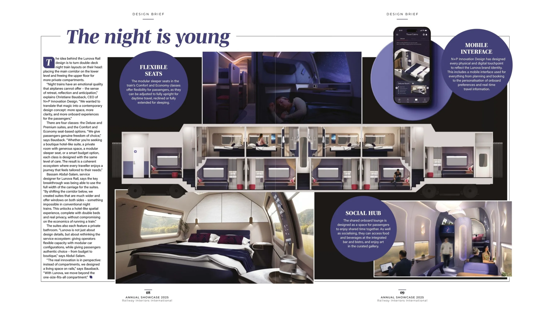 Our groundbreaking LUNOVA night train concept is turning heads in Railway Interiors International. Designed to elevate comfort, flexibility, and sustainability, it’s redefining what overnight travel can be.